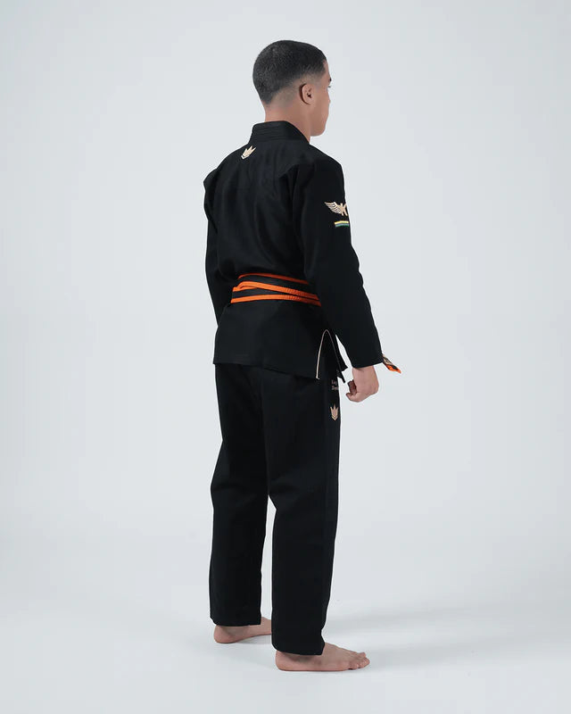 Designed with a 450 GSM Micro Pearl Weave Plus jacket and 290 GSM ripstop pants, this gi is lightweight, durable, and engineered for comfort during long training sessions and tournaments. Premium gold embroidery, clean patchwork, and signature Player Special details make it one of the most unique kids gis ever produced.