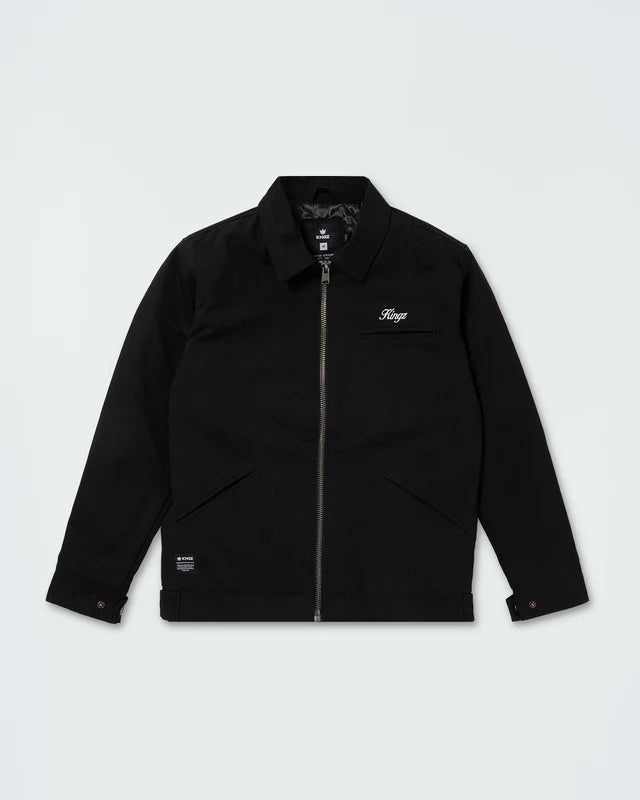 Inspired by classic workwear and built for everyday durability, the Mechanic Jacket pairs a tough exterior canvas with a satin-quilted interior for steady warmth and comfort. Direct embroidery on the chest and back adds clean Kingz detailing without excess. Designed for a regular fit and cut as a unisex layer, it works easily over training gear or daily wear.