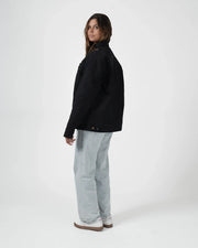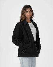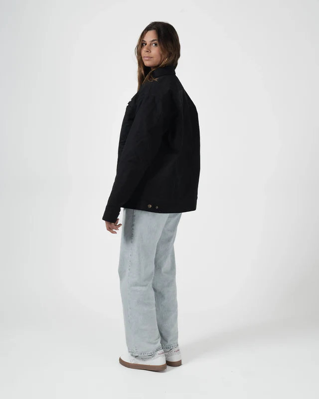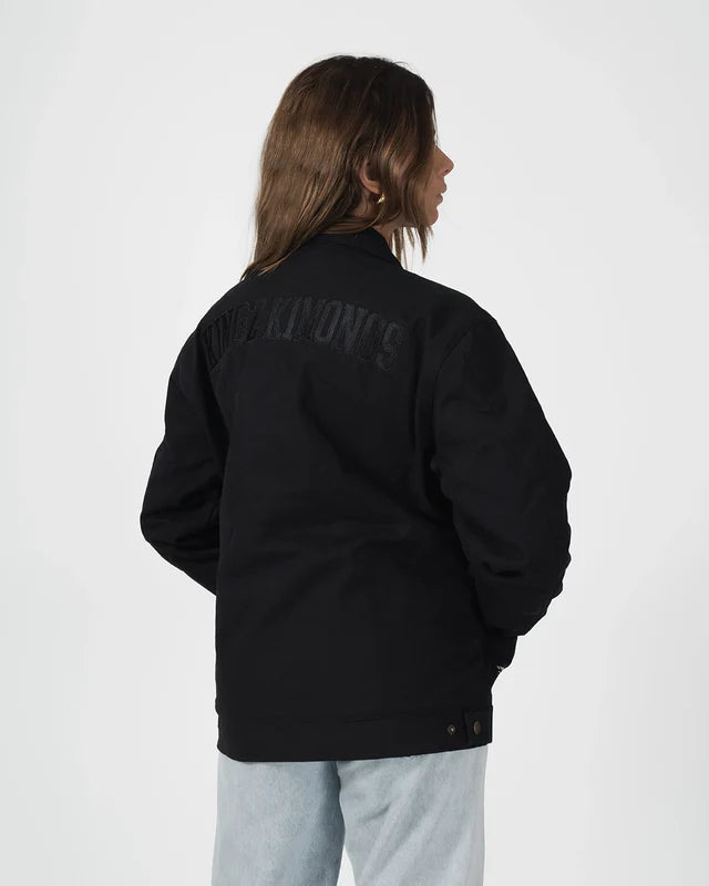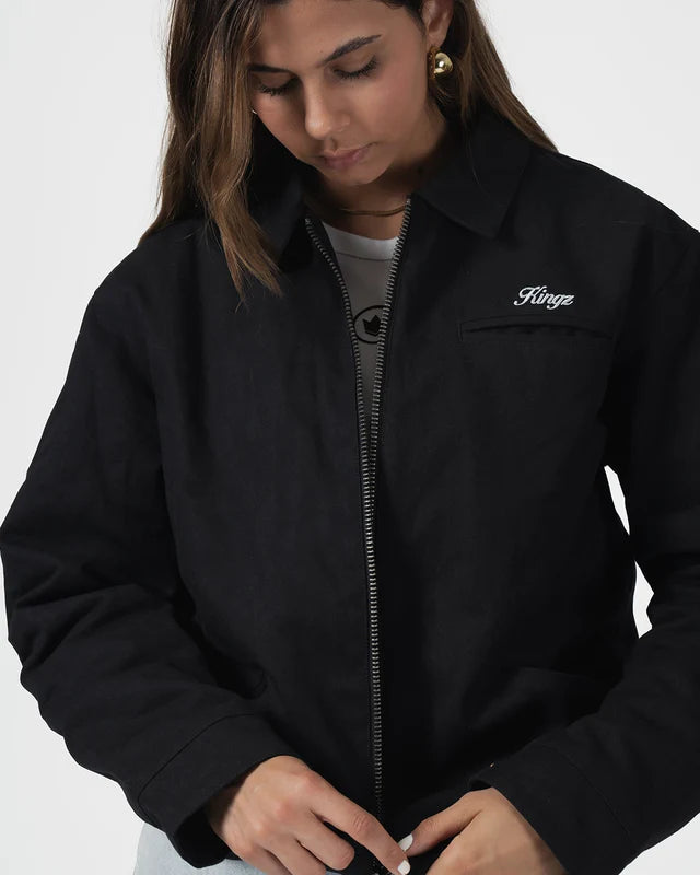 Inspired by classic workwear and built for everyday durability, the Mechanic Jacket pairs a tough exterior canvas with a satin-quilted interior for steady warmth and comfort. Direct embroidery on the chest and back adds clean Kingz detailing without excess. Designed for a regular fit and cut as a unisex layer, it works easily over training gear or daily wear.