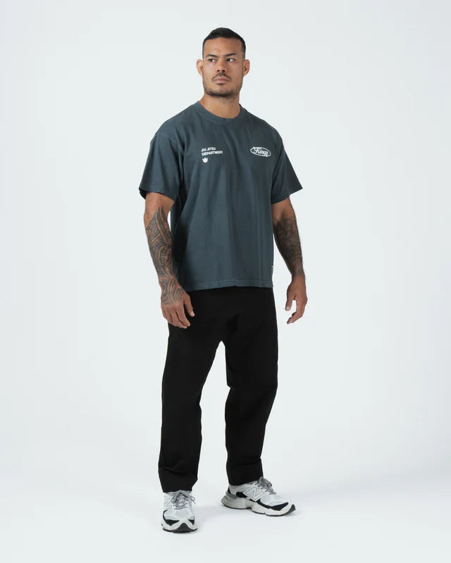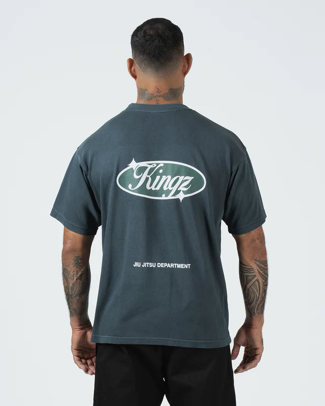 Inspired by vintage pit crews and classic motor shop graphics, the Kingz Jiu Jitsu Department Tee brings a rugged, timeless feel to the mat. With bold front and back prints that nod to old-school mechanic uniforms, this heavyweight tee blends Jiu-Jitsu heritage with garage-style attitude.